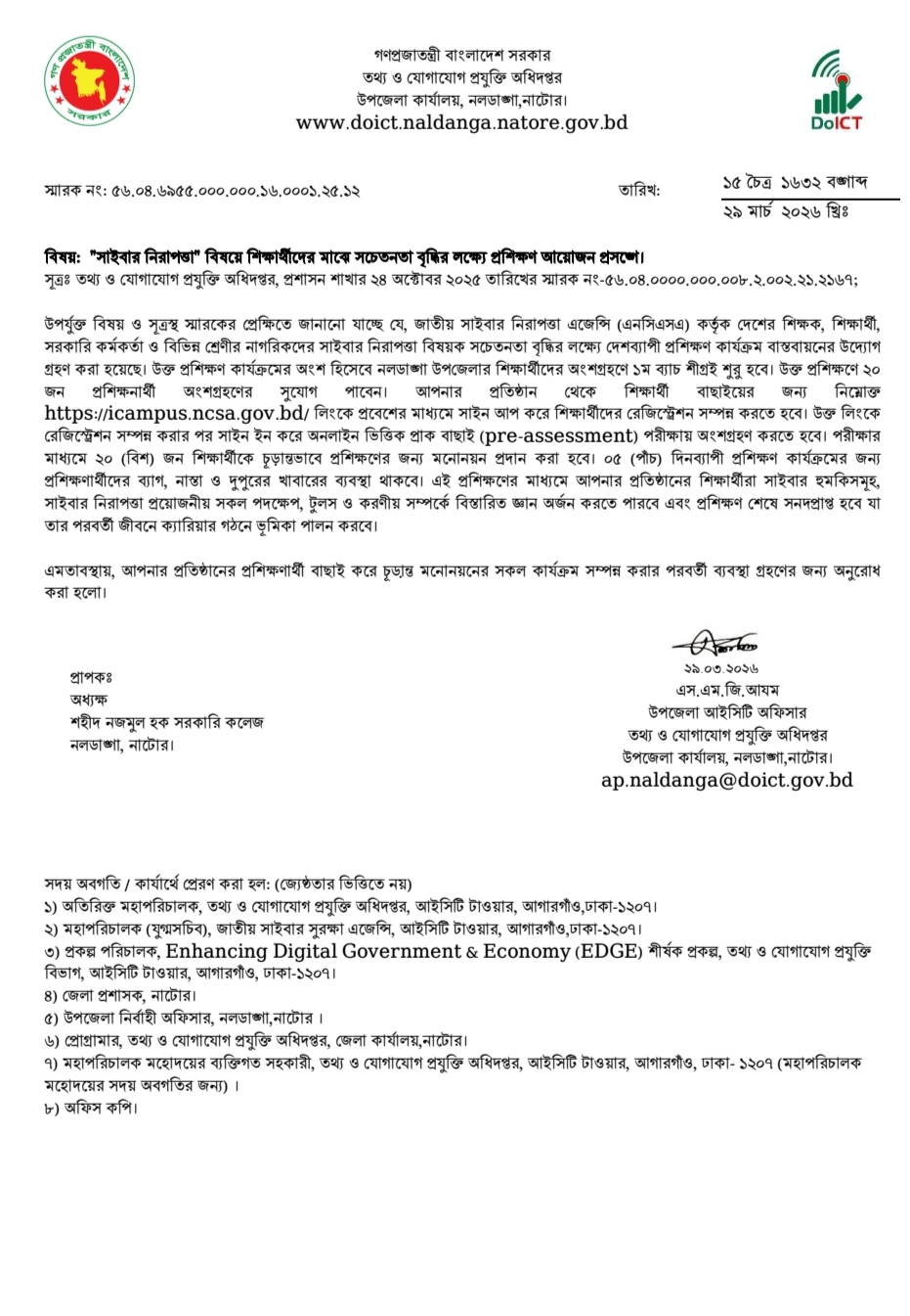 | 1 | এইকলেজের সকল শিক্ষার্থীদের কে নিম্নোক্ত নোটিশ মোতাবেক রেজিস্ট্রেশন পূর্বক প্রশিক্ষণের অংশগ্রহনের জন্য বিশেষভাবে অনুরোধ করা হলো | 30 Mar 2026 | Download |