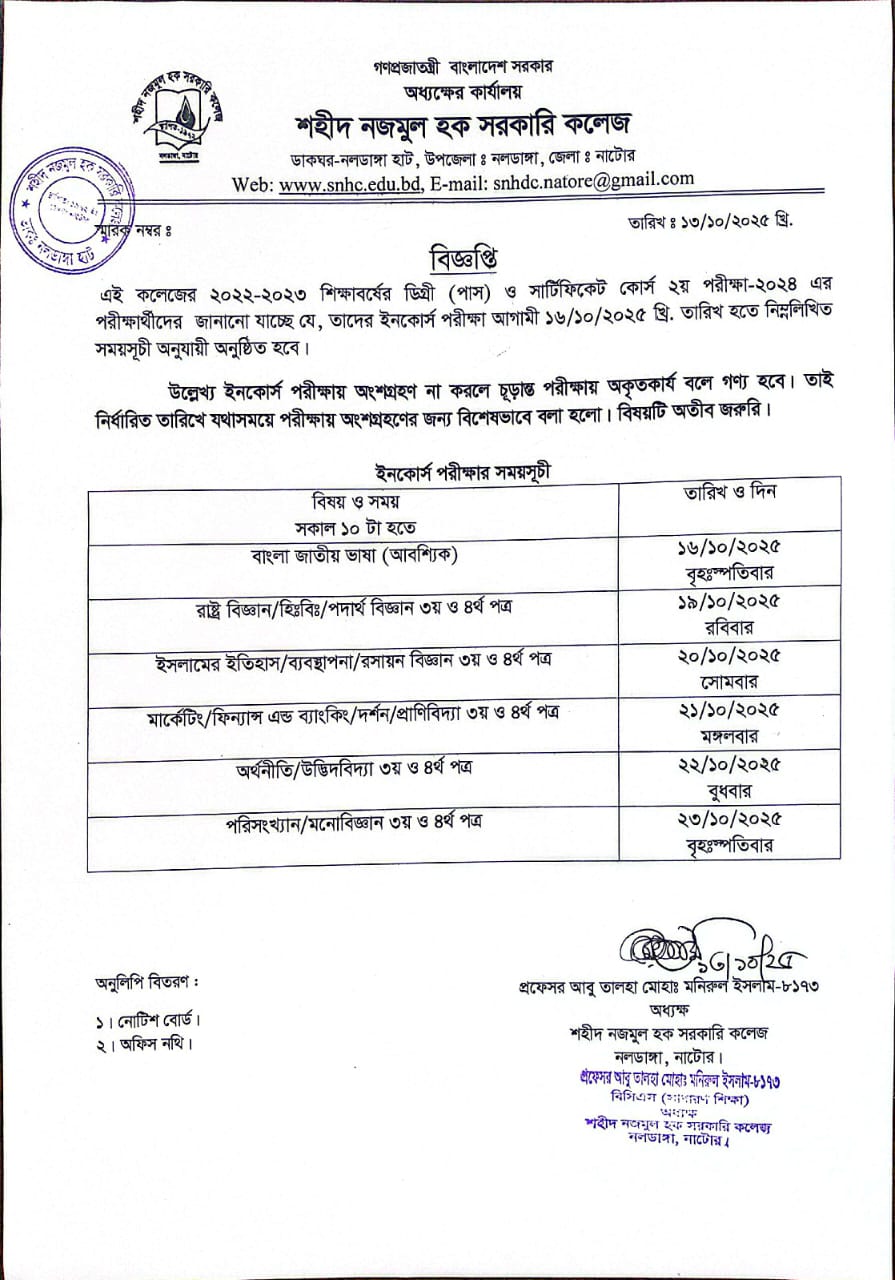২০২৪ সালের ডিগ্রি (পাস) ও সার্টিফিকেট কোর্স ২য় বর্ষের ইনকোর্স পরীক্ষা সংক্রান্ত বিজ্ঞপ্তি
